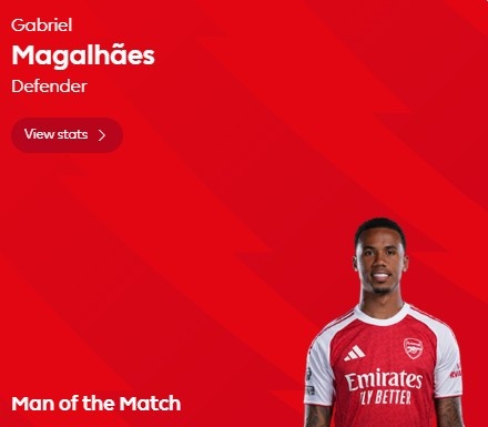 攻防俱佳,头球制胜!官方:加布里埃尔当选2-1纽卡全场最佳球员