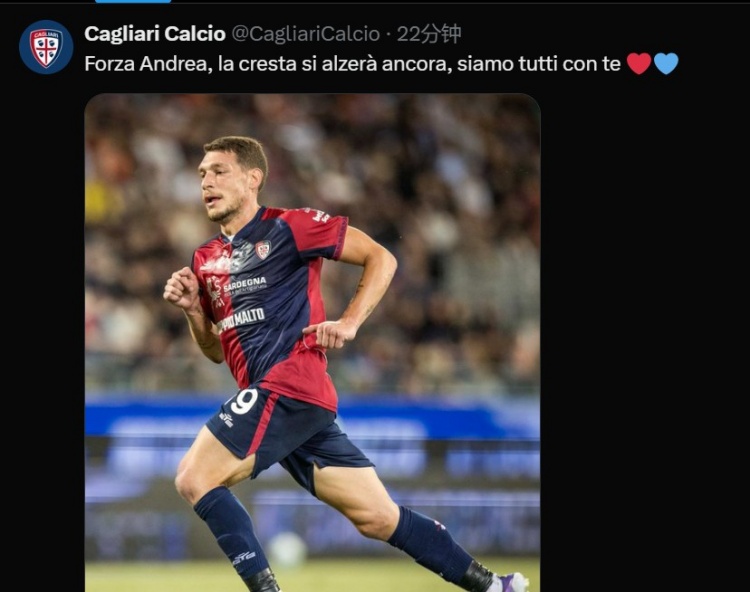 9月28日讯 卡利亚里官方消息,前锋贝罗蒂遭遇十字韧带撕裂。卡利亚里官方:“在昨天比赛中受伤后,贝洛蒂今天接受了诊断性检...