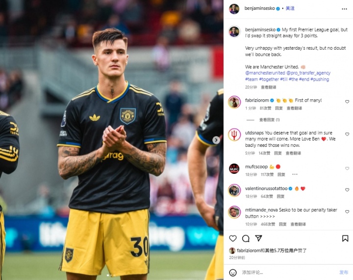 09月28日讯 英超第6轮,曼联客场不敌布伦特福德,前锋舍什科打入英超处子球,但没能挽救球队失利。赛后,舍什科更新了社媒...