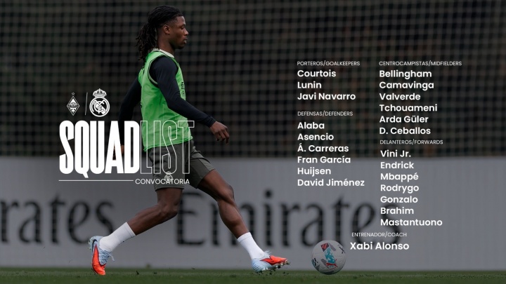 皇马远征阿拉木图名单:姆巴佩、维尼修斯领衔,米利唐因伤缺席