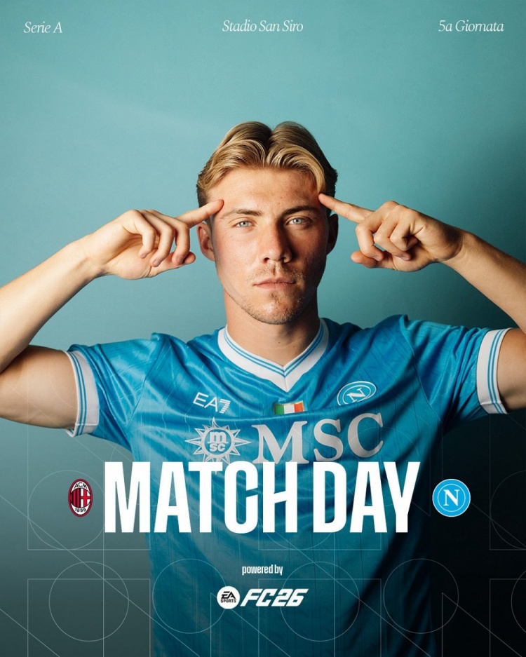 那不勒斯公布客战AC米兰海报,状态回暖的霍伊伦单人入镜